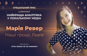 Спеціальний приз у номінації «Найкраща аналітика у локальному медіа» одержала Марія Ревер з сайту «Наші гроші. Львів» за матеріал «Усе пішло не за планом» . "Лише протягом останніх двох років виконком у Львові дозволив 130 будівництв, які порушують генеральний план міста. А це понад 60% рішень на нове житлове будівництво", - йдеться у матеріалі Марії Ревер.