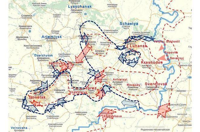Тривають удари сил АТО по Первомайську й контрудари бойовиків вбік Попасної. Слід звернути увагу на Первомайськ, Стаханов, Ірміно та Кіровськ – цей район може довго утримуватися бойовиками, якщо врахувати, що з північно-східного напрямку його від зовнішнього світу відрізає річка Сіверський Донець, а з півночі сили АТО можуть упертися в укріпрайон, який бандформування почали активно створювати в Кіровську. Окрім того, з цього району залишається велика ймовірність удару по місту Дебальцеве й у тил групі сил АТО, які йдуть на Фащівку.