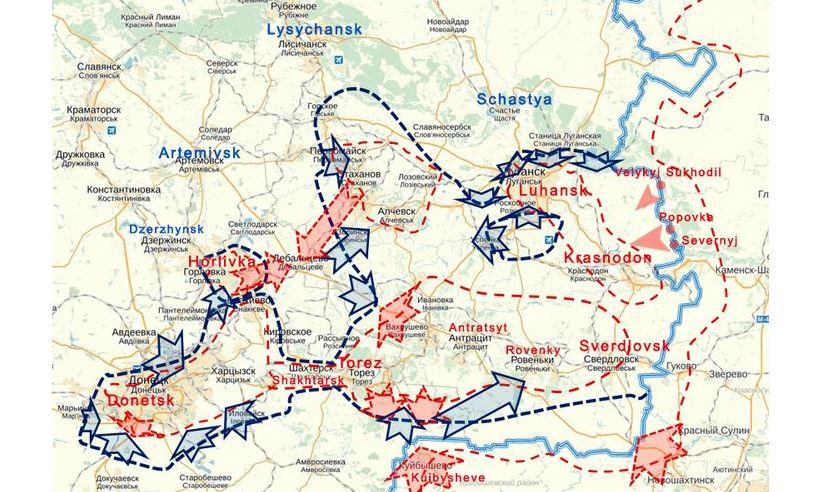 При цьому сам удар буде завдано з району Залісне (селище між Сніжним і Міусинськом) по лівому березі Міуса в район Дмитрівки. А другий - за напрямком: Сніжне-Мануйлівка-Петровське-Донецький Кряж-Маринівка.