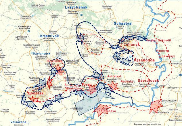 Тільки в цьому випадку два тактичних мішка наших сил перетворяться на оперативне оточення Донецького угруповання бойовиків. Судячи з того, що сили АТО змогли зайняти місто Вахрушево і селище Хрустальний, то кінець оточення бойовиків вже близький. (Подробиці опускаємо)