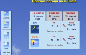 «Метеорологічна обстановка 13 червня: мінлива хмарність, вдень місцями – короткочасні дощі, грози, град, вітер – південно-східний, вдень – 9-14 метрів за секунду, температура повітря вдень метрів за секунду 17-22° тепла», – повідомили сьогодні, 13 червня, на сайті департаменту з питань цивільного захисту Львівської обласної державної адміністрації. Натомість у прес-службі міськради розповіли: