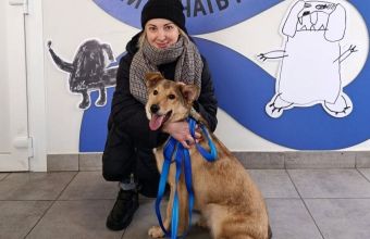 Нова господарка з рудим собакою в центрі адопції ЛКП «Лев»