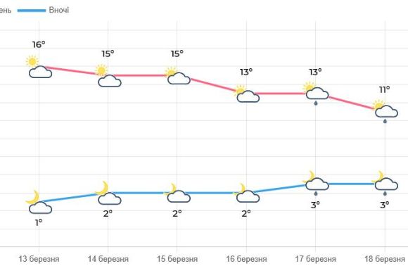 Температура вночі від 1° морозу до 1° тепла, вдень стовпчики термометрів піднімуться до 15–17° тепла.