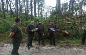 Учасники наради оглянули наслідки буревію та стан пошкоджених насаджень. Керівник підприємства Косовський А. П. доповів про проведену лісгоспом роботу після стихії та звернувся до директорів лісогосподарських підприємств про допомогу в розробці буреломів. Він зазначив, що лісгосп має достатню кількість лісозаготівельних бригад для розробки. Однак потребує додатково 7 одиниць трелювальної техніки. Оскільки терміни розробки насаджень дуже короткі, необхідна допомога сусідів.