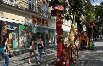 У Львові навпроти фірмового магазину, який належить компанії Президента Петра Порошенка, всі дерева прикрасили масштабними декораціями. На думку екологів, це шкодить насадженням та суперечить закону про благоустрій.