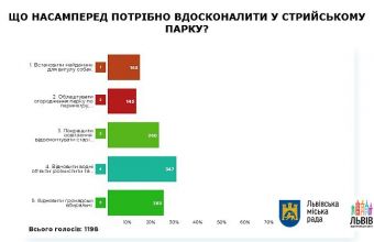 Львів’яни вирішили в межах публічної консультації щодо першочерговості покращень у Стрийському парку, яка тривала з 1 до 25 жовтня, що насамперед потрібно вдосконалити у Стрийському парку.