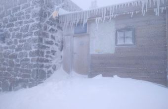 На горі Піп Іван Чорногірський падає сніг, обледеніння схилів.Температура повітря -3°С.