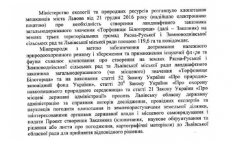 Про це повідомила сьогодні, 30 грудня, громадський активіст Наталія Кузьма, яка також розповіла: «За інформацією керівника департаменту екології та природних ресурсів Львівської облдержадміністрації Руслана Гречаника, наступним кроком обласна адміністрація підготує необхідні по процедурі документи для Кабінету міністрів України. І очікуємо указ Президента про створення заказника. Продовжуємо підписувати петицію (http://e-dem.in.ua/lviv/Petition/View/799), це важливо для прийняття подальших рішень. Вже маємо майже сотню голосів відтепер найрідніших мені людей. Оголошую 2017-й екороком для Львова!».