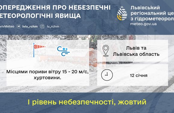 Попередження про небезпечні метеорологічні явища зробив Львівський регіональний гідрометеоцентр, пише DailyLviv.com.