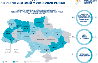 Станом на 13 липня в Україні зареєстровано 34 звернення за медичною допомогою у зв’язку із ураженнями зміїною отрутою.