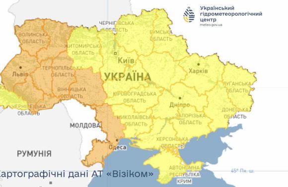 У західних, вдень і в Вінницькій та Одеській областях пориви сильного вітру 25-28 м/с.