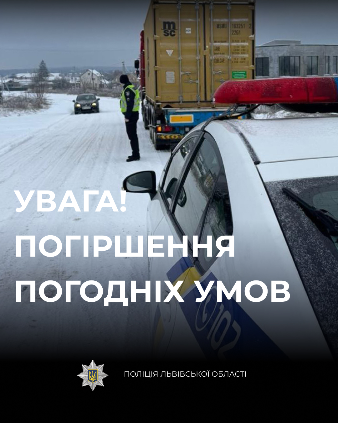 Поліція Львівщини попереджає про ускладнення ситуації на дорогах через погоду
