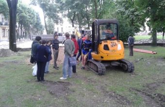 Оскільки правоохоронні органи відмовляються реагувати, сьогодні ми самостійно зупинили спробу прорити нову траншею вглиб скверу. Ми надалі будемо зупиняти роботи в межах підпірної стінки скверу.