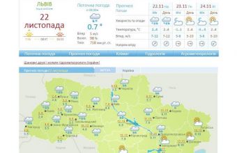 «Метеорологічна обстановка: 22 листопада вночі та вранці – сильні опади, на півдні території – дуже сильні (переважно – у вигляді мокрого снігу). Місцями – налипання мокрого снігу. На дорогах – ожеледиця.