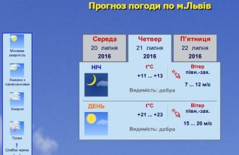«Львівський регіональний центр з гідрометеорології інформує, що завтра, 21 липня, у Львові – без істотних опадів, вранці та вдень місцями – пориви північно-західного вітру 15-20 метрів за секунду. Температура повітря вночі – 11-13° тепла, вдень – 22-24° тепла», – повідомили сьогодні, 20 липня, в прес-службі міськради, де також поінформували: