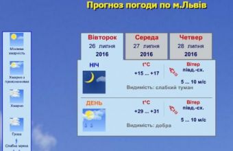 «Як повідомляє Львівський регіональний центр з гідрометеорології, до кінця доби у Львові – грози. У другій половині дня із збереженням до кінця доби 26 липня гроза, під час грози шквал 15 -20 метрів за секунду, град», – попередили сьогодні, 26 липня, в прес-службі міськради».