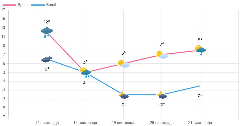 Температура повітря знизиться вночі до мінусових значень, денна залишатиметься в слабких плюсах.