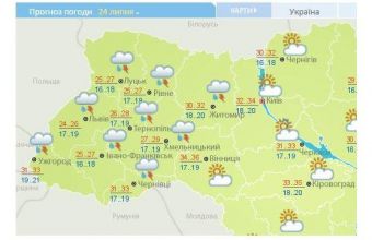 За прогнозами Львівського регіонального гідрометцентру, 24 липня у Львові будуть гроза й град. А під час грози – шквал 17-22 метрів за секунду. Вночі – сильна злива.