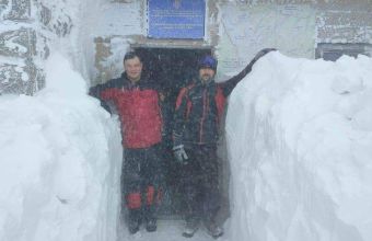 "Сьогодні, 19 лютого, на горі Піп Іван Чорногірський - хуртовина та майже двометровий шар снігу!!!