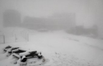 На горі Піп Іван Чорногірський у Карпатах випав сніг, температура повітря опустилася до -6°. На вершині — обмежена видимість та туман.