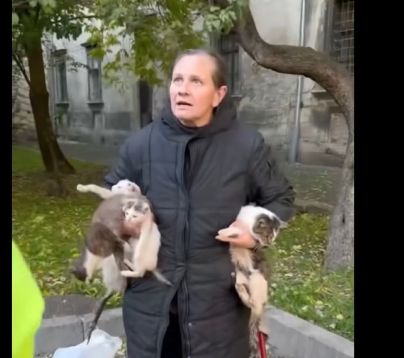 У центрі Львова містяни помітили жінку з чотирма котами, які мали виснажений вигляд. Коли небайдужі запропонували допомогу тваринам, власниця відповіла агресивною.