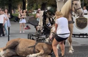 "26 серпня посеред центральної вулиці міста впав кінь. Жінка, що керує твариною, спробувала привести її до тями – вже за кілька хвилин кінь був змушений везти пасажирів у кареті.