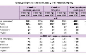 Упродовж січня–травня 2020 року у Львові народилась 2421 дитина, порівняно з січнем–травнем 2019 року кількість новонароджених зменшилась на 215 дітей (на 8,2%).