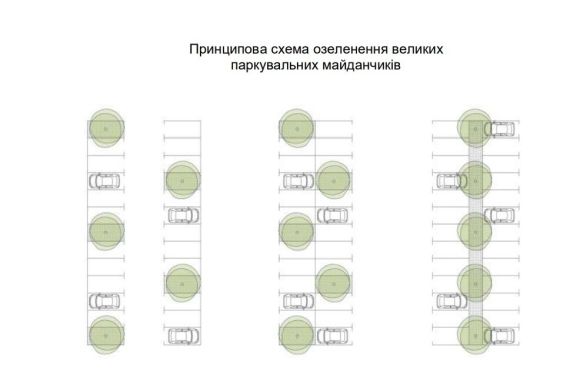«Ми пропонуємо, щоб на чинних паркінгах висаджували дерева, а на нових – одразу передбачали озеленення. Це повинні бути великі дерева з розвиненою кроною, які створюватимуть тінь і зменшуватимуть температуру в місті. Адже у затінених місцях паркування на кілька градусів нижча температура, ніж на відкритих ділянках», — зазначив головний архітектор міста.