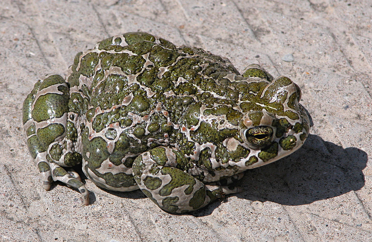 Зелена ропуха (Bufotes viridis) — це отруйна амфібія, яка має зелене забарвлення з темними плямами, отруйні залози на шкірі, здатність виділяти токсини при загрозі, розмір до 10-12 см.