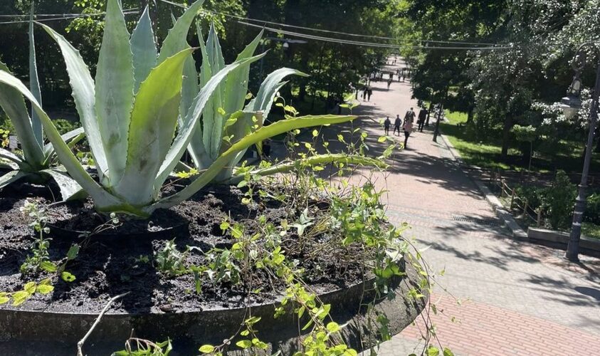 Управління екології Львова спільно із працівниками ЛКП «Зелений Львів» висадили розкішні агави та виткі декоративні рослини - жимолость японську, плющ та бакопу - у вазу, що прикрашає центральний вхід до найстарішого міського парку Львова — парку імені Івана Франка, пише DailyLviv.com.