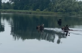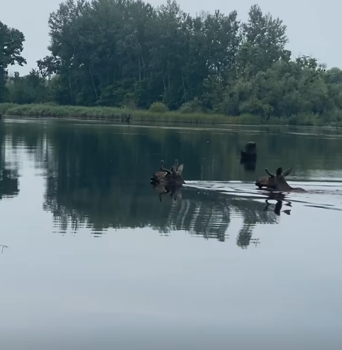 Він зафільмував двох лосів, які повагом перепливали ріку Західний Буг.