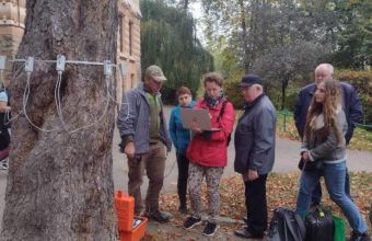Спеціальним приладом для виявлення аварійності дерев - імпульсним томографом «Арботомом» у Львові обстежили дві 90-річні ялини у Ботанічному саду Національного лісотехнічного університету.