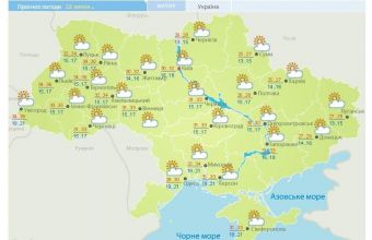 25 липня: мінлива хмарність. Вночі – без істотних опадів, вранці та вдень місцями – короткочасні дощі, грози, град. Вітер – південно-східний, 9-14 метрів за секунду. Температура повітря вночі становитиме 13-18º, вдень – 28-33º тепла».