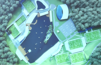 Паралельно з відпочинковою зоною будуватимуть вісім футбольних полів зі штучним і трав’яним покриттям, там же красуватимуться спальні будинки та спортивно-реабілітаційний центр.