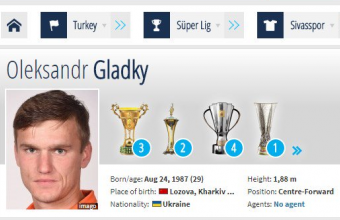 29-річний форвард Олександр Гладкий уклав угоду турецьким «Сівасспором» до 30 червня 2019 року.