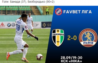 Футбольний клуб «Львів» пропустив у гостях два м’ячі від «Олександрії» й програв у матчі дев’ятого туру чемпіонату України серед команд «Favbet Ліги».