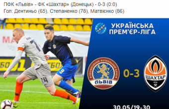 Футбольний клуб «Львів» програв у четвер, 30 травня, в завершальному, 32-му турі чемпіонату країни серед команд прем’єр-ліги донецькому «Шахтарю» з рахунком 0:3.