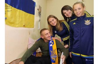 «У середу, 21 жовтня, футболістки Національної жіночої збірної України Лідія Шпак, Ірина Кочнєва та Яна Калініна відвідали воїнів АТО, котрі лікуються у Військово-медичному клінічному центрі західного регіону у Львові. Військових також привітав наставник жіночої збірної Володимир Рева та голова федерації футболу Львівщини Ярослав Грисьо.