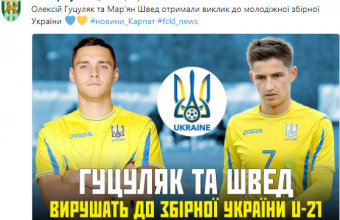 Про це повідомили в інформаційному центрі ФК «Карпати», де також розповіли: «До збірної України U-21 вирушать двоє карпатівців – нападники Олексій Гуцуляк та Мар’ян Швед. Виклик до молодіжної збірної України отримав також екс-карпатівець Василь Кравець, який зараз є гравцем іспанського «Луго»».