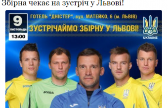У Федерації футболу України запевнили: «Синьо-жовті» запрошують усіх охочих прийти до готелю «Дністер» на вулиці Матейка, (№6) у четвер, 9 листопада о 13:00, щоб привітати улюблену команду!