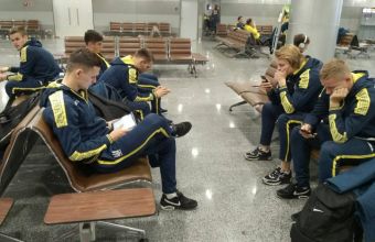 Літак із національною командою мав вилетіти з київського аеропорту «Бориспіль» об 11.30, але рейс був затриманий з виробничих причин.