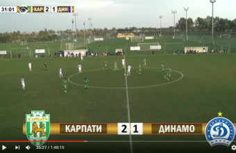 «Зелено-білі» вмить захопили перевагу на полі, тримали м’яча, намагались швидко та різноманітно атакувати. Натомість, динамівці вибудували щільну лінію захисту біля володінь Клімовіча. Прорвати яку, «Карпати» зуміли вже ближче до кінцівки першого тайму.