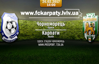 Уболівальники «Карпат» матимуть змогу переглянути на сайті львівського футбольного клубу пряму трансляцію його першої офіційної гри в новому році з одеським «Чорноморцем», яка розпочнеться 26 лютого, о 14:00. Про це повідомили сьогодні, 22 лютого, в інформаційному центрі ФК «Карпати», де також попередили: «Телеканал «2+2» не транслюватиме гру в Одесі». Як інформував «Щоденний Львів», трансляція поєдинку 19-го туру Української Прем’єр-ліги між одеським «Чорноморцем» і львівськими «Карпати» відбудеться також на телеканалі УНІАН.