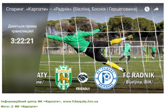 «Першим суботнім спаринг-партнером «Карпат» у Туреччині стане боснійський «Раднік» – чинний володар Кубка країни і претендент на медалі боснійської першості. Розпочнеться поєдинок о 13:30 за київським часом.