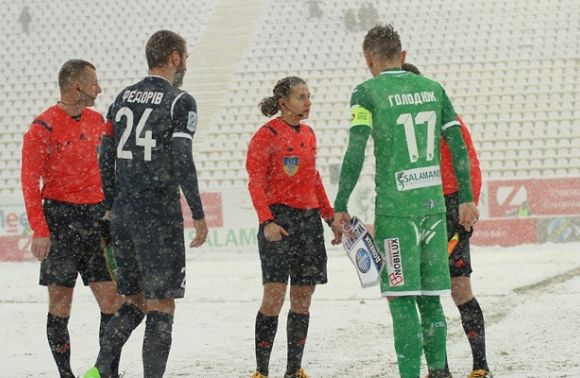 Про це повідомили сьогодні, 15 грудня, в інтернет-виданні «Xsport.ua». Як інформував «ЩЛ», перший тайм матчу «Карпати» – «Олімпік» 18-го туру української прем’єр-ліги завершився з рахунком 1:1, але арбітр зустрічі Катерина Монзуль не вивела команди на поле після перерви через те, що газон львівського стадіону «Україна» вкрився снігом.
