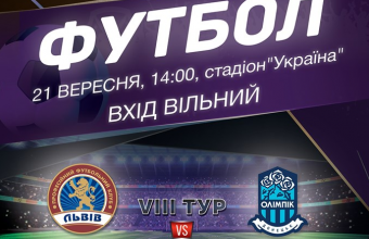У суботу, 21 вересня, о 14:00 на стадіоні «Україна» розпочнеться матч восьмого туру чемпіонату України з футболу серед клубів прем’єр-ліги, в якому ФК «Львів» прийматиме донецький «Олімпік».