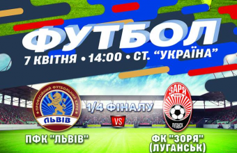 У неділю, 7 квітня, о 14:00 на стадіоні «Україна» розпочнеться матч 1/4 фіналу Кубка України з футболу між «Львовом» та луганською «Зорею».
