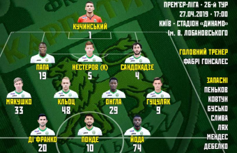 «Карпати»: Кучинський, Папа, Нестеров, Сандохадзе (Дебелко, 90), Мякушко (Мендес, 86), Кльоц, Онгла, Гуцуляк, Ді Франко (Бусько, 66), Йода, Понде.