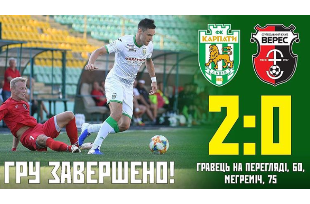 Товариський матч львівських «Карпат» і рівненський «Верес», який транслювали на сайті «зелено-білих», завершився перемогою господарів із рахунком 2:0.