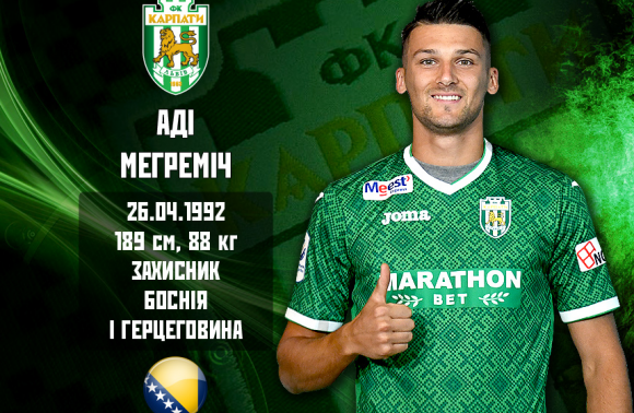 Про це повідомили у вівторок, 17 липня, в інформаційнму центрі ФК «Карпати», де також розповіли: «Останньою командою Мегреміча був «Железнічар», з яким він виграв Кубок Боснії та Герцеговини і здобув срібні медалі першості. Угода розрахована на один рік. Аді Мегреміч народився 26 квітня 1992 року в Сараєво (Боснія та Герцеговина). Кар’єру розпочав у боснійському «Радніку» (Хаджичі). Згодом виступав за «Вележ» з Мостару та «Олімпік» (Сараєво)».